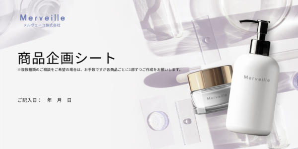弊社へのご相談時にご利用いただけるシートです。 シート上の案内に則ってご入力いただくだけで、化粧品開発に必要な仕様がすべて網羅できるようになっております。
